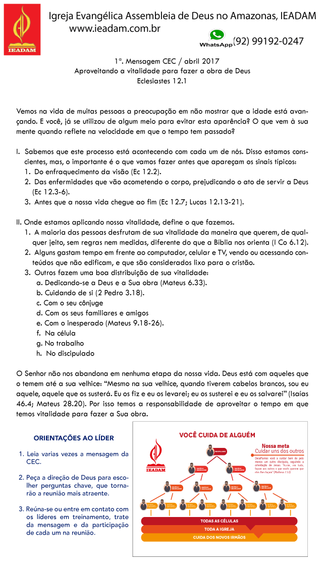 1a. Mensagem CEC / abril 2017 Aproveitando a vitalidade para fazer a obra de Deus Eclesiastes 12.1