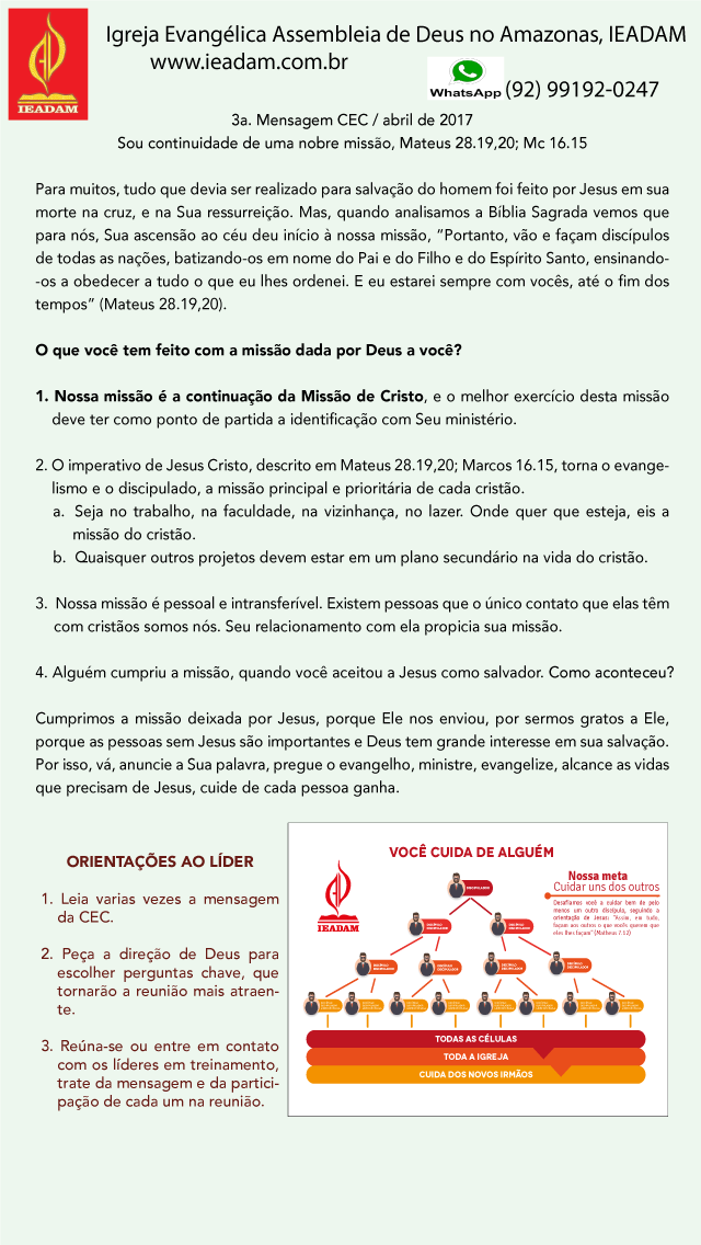 3a. Mensagem CEC / abril de 2017 Sou continuidade de uma nobre missão, Mateus 28.19,20; Mc 16.15